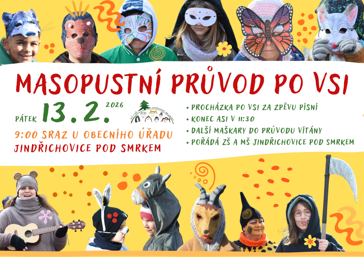 ZŠ MŠ Jindřichovice pod Smrkem všechny srdečně zve na masopustní průvod po vsi. Jedná se o 3. ročník pořádaný naší školou.